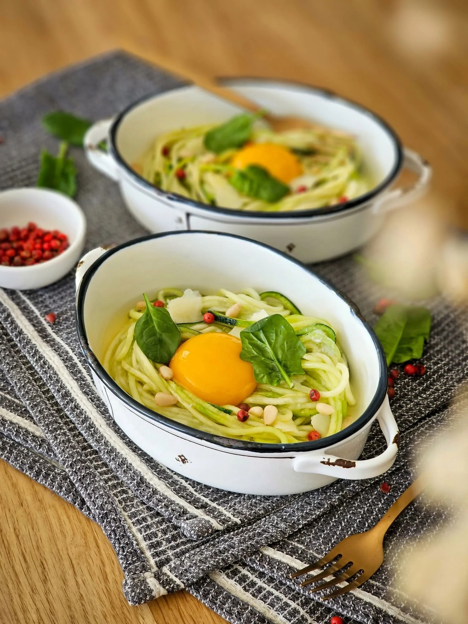 Sobre els nius, afegir un ou i el parmesà i deixar tapat durant uns minuts.